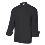 Esta chaqueta cuenta con un cierre central con botones automáticos ocultos, que aporta un acabado elegante y seguro. El cuello tipo mao refuerza la apariencia profesional, mientras que la manga tipo sastre con abertura en puños proporciona libertad de movimiento y practicidad al manipular utensilios o bandejas calientes. Su diseño asegura comodidad durante toda la jornada laboral.