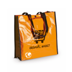 Bolsa reutilizable en resistente material laminado. Con asas largas reforzadas en nylon de 70cm, fuelle reforzado con ribetes y cierre de corchete. De acabado cosido y resistencia hasta 12kg de peso. Disponible en gama de colores brillantes.